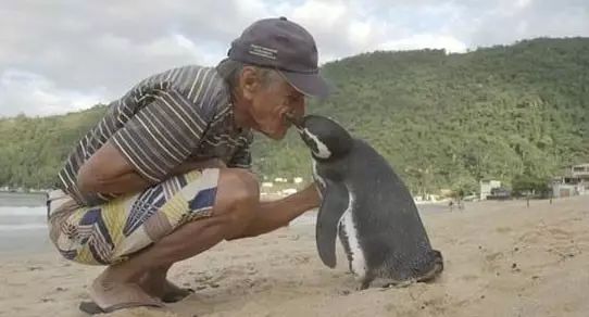 老人名叫若昂·佩雷拉·德索萨,而Dindim是一只麦哲伦企鹅,海洋学者说,Dindim从巢穴回来和老人相聚的旅途要经过大量海狮、海豹、虎鲸的掠杀,死里逃生,异常凶险。