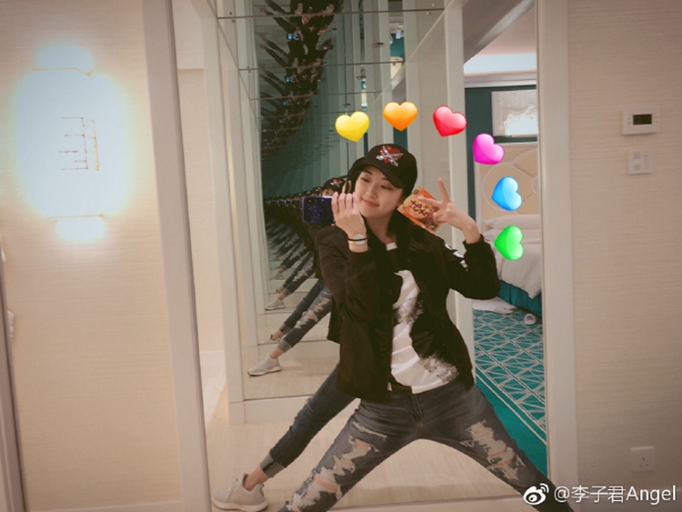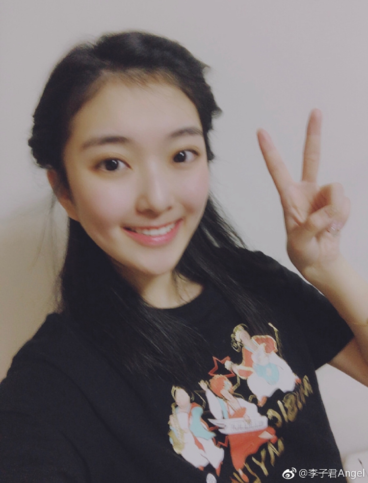 李子君微博晒照,笑容怡人,卖萌剪刀手。