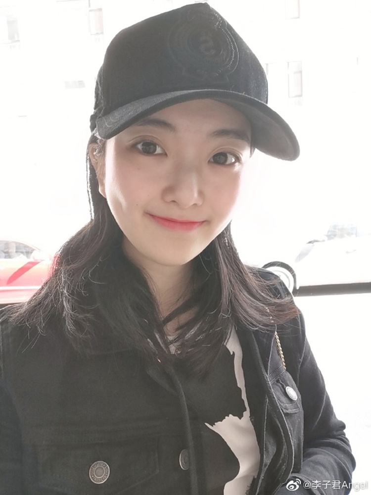 李子君五官精致,头戴黑帽。
