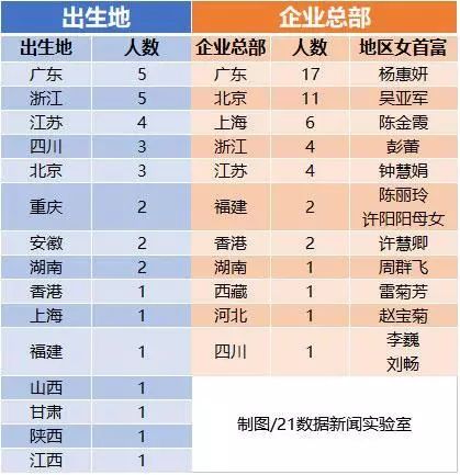 从出生地来看,粤商仍然最多,有5位;浙商今年增加2位,与粤商并列第一。今年胡润百富榜上粤商人数第一次超越浙商。白手起家女企业家中,也是粤商最多。