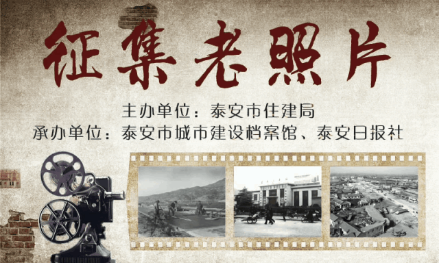 由泰安市住房和城乡建设局主办,泰安市城市建设档案馆、泰安日报社联合承办的庆祝新中国成立七十周年暨泰安市城市建设成就展系列活动正在进行中,借此历史契机《城建档案》将具时代发展印记的泰城老照片、图片、视频资料、通过新旧对比,展现时代变迁、城市巨变,用时代发展的年轮与印记,带给市民们极具冲击感的画面,以全面的质感和多方位的历史感知向祖国70华诞献礼!