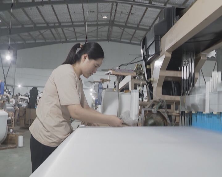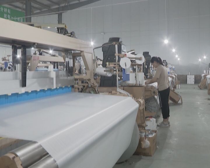 引进高端喷水织布机后,企业人工成本大幅减少,员工工资也随之上涨。周娟娟是弘新喷水织布的一名员工,由于织布机机械化程度高,她一人就能轻松管理几十台机器。