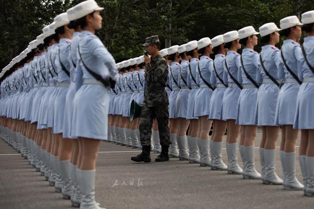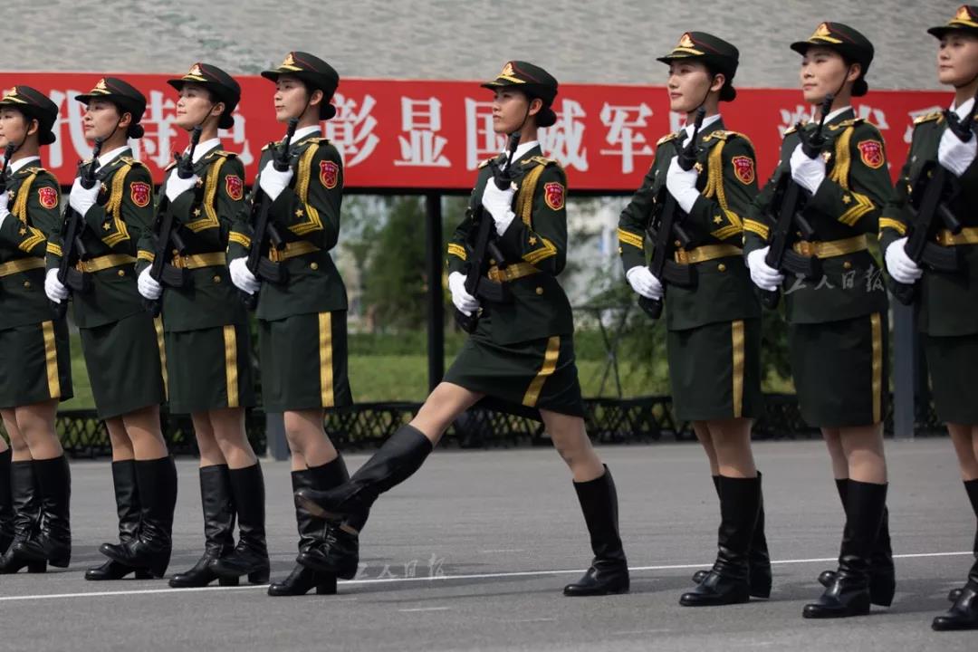 ↑仪仗方队的女兵正在列队训练。此次阅兵中,徒步方队女性身高普遍在1.63米至1.75米之间。