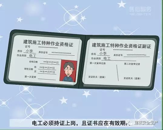 1.电工必须经过按国家现行标准考核合格后,持证上岗工作;其他用电人员必须通过相关教育培训和技术交底,考核合格后方可上岗工作。