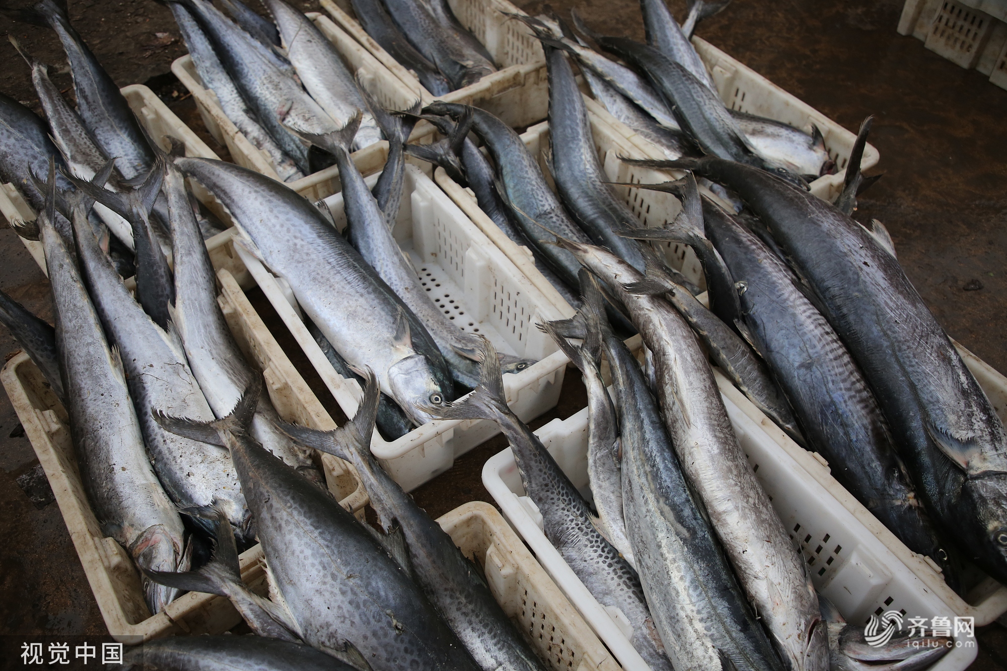 近日,山东日照,在岚山渔港,一艘艘大马力铁壳渔船陆续靠岸,鱼虾满仓的盛况让“吃货们”大呼过瘾。图为日照市岚山海鲜市场上,新鲜的海产品。