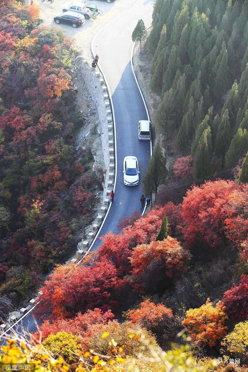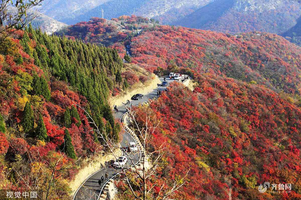近日,淄博博山和尚房段公路成了网红路,漫山红叶景色迷人吸引大批市民。这里有着博山秋色最美公路的称号,秋意浓浓的季节里迎来郊游赏红叶高潮。