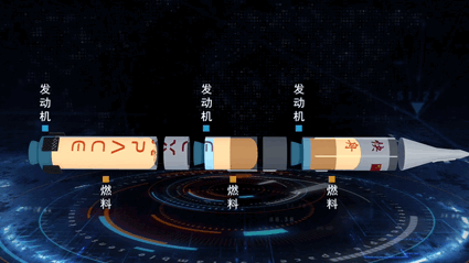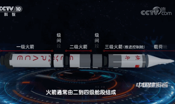 由四级舱段组成的火箭,末级是载荷舱,主要搭载卫星,其他级由燃料舱和发动机组成。
