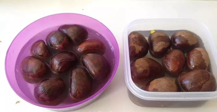 1. 挑选几个饱满完整没有发霉的板栗,尖头朝下,放入清水中浸泡。水位没过板栗一半就可以,水多了可能会腐烂,每天换一次水。