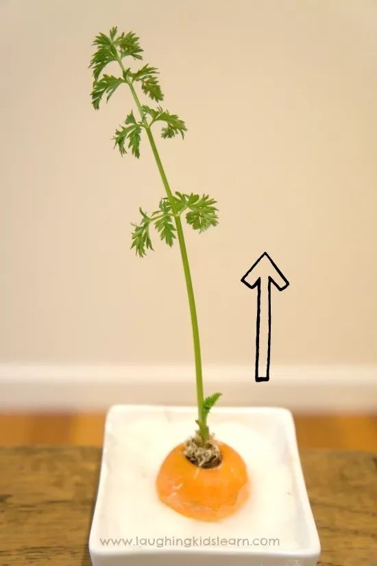 2. 每隔两天换一次清水,一周后你会慢慢发现胡萝卜绿芽越长越高啦。