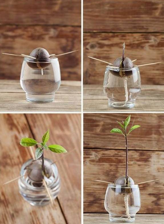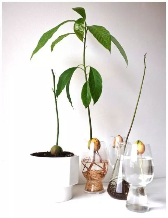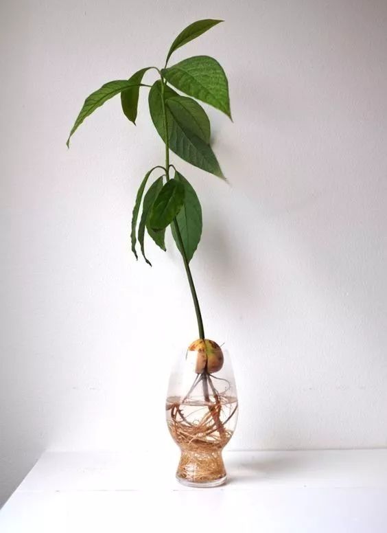 家里买了牛油果,吃完的果核去种盆栽,配上玻璃花瓶,绝对颜值满分。