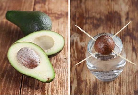 1. 将牛油果果核挖出,在上面扎几个小孔。然后把果核插上牙签,固定在水面上,浸泡三分之一左右。