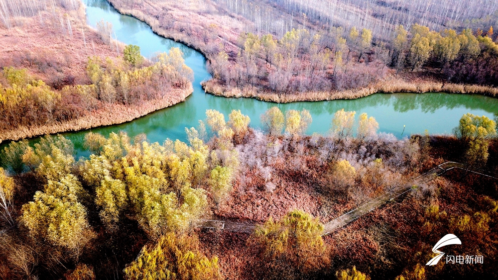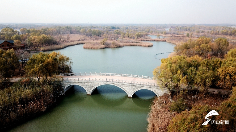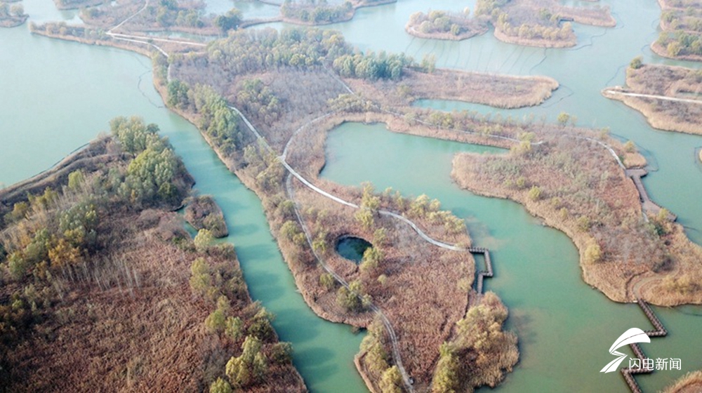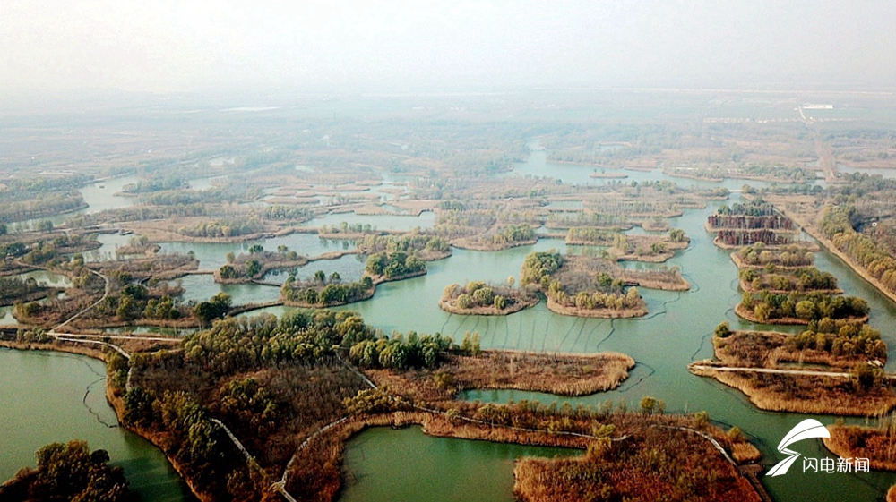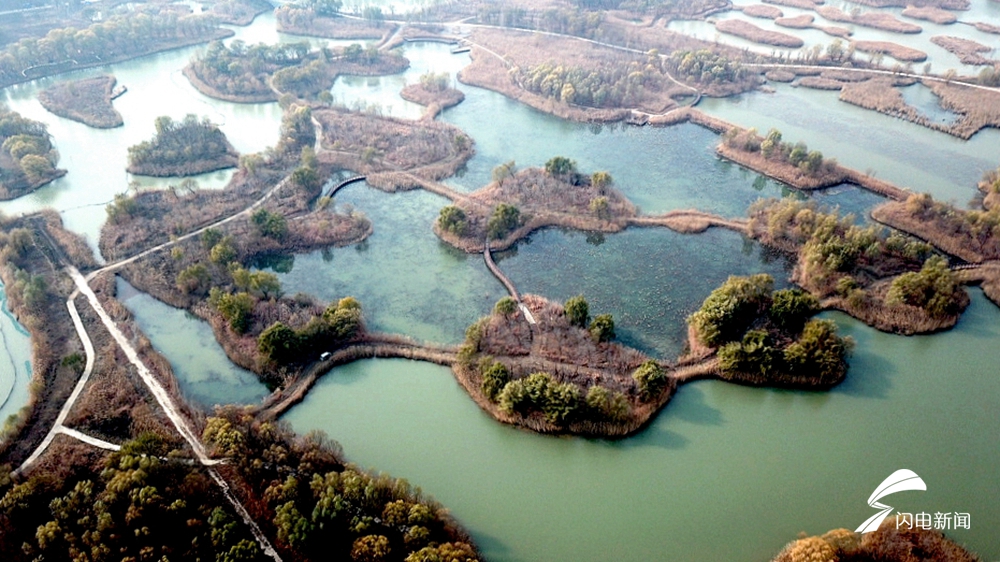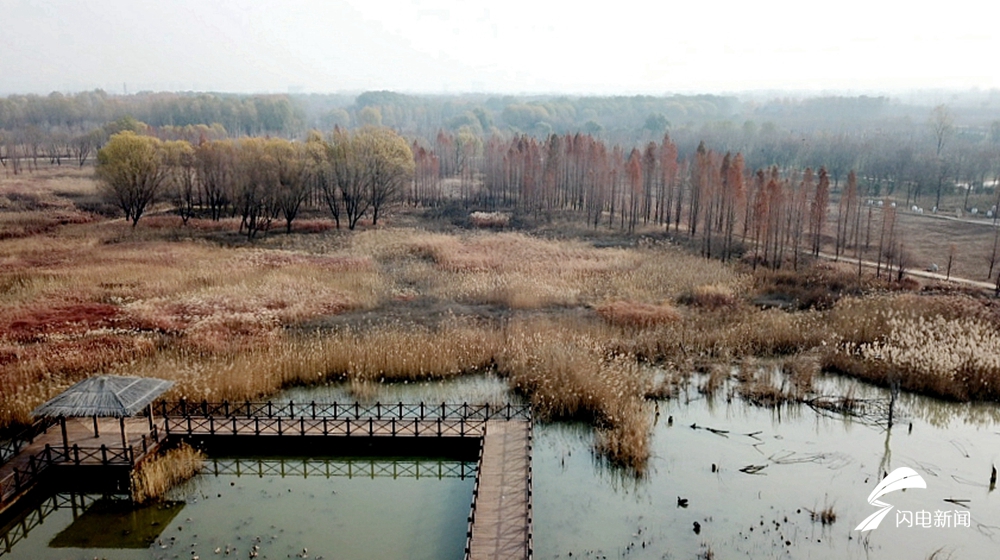 位于济南西部的济西国家湿地公园是山东省最大的城市湿地,占地面积约33.4平方公里。湿地内大小岛屿近百座,集上千种动植物,被网友称为“济南的绿肺”、“山东最美公园”。园区内沟汊纵横、芦苇丛生,野生动物众多。冬日的阳光下,俯瞰济南西湿地,别有一番风味。