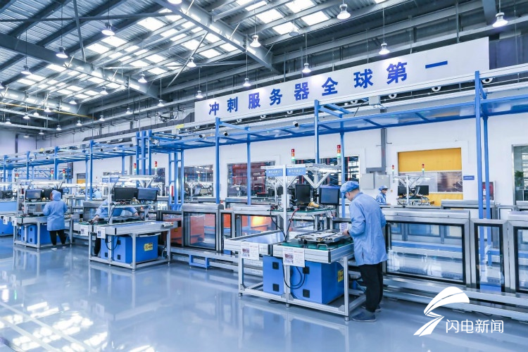 现代经济产业的崛起与壮大背后,是数字基础设施等要素条件的改善与升级。近几年来,浪潮通过发展关键计算、云计算、AI计算、量子计算、5G边缘计算、高性能计算等,创新计算力技术与服务,改善各类数字基础设施,有效促进国内各行业生产效率和产业竞争力的整体提升。权威机构数据显示,通过在全球各数字技术创新领域的计算力支撑,浪潮蝉联全球服务器前三,中国第一,浪潮AI 服务器全球第一,中国市场占有率超过50%,充分体现了浪潮数字产业倍增器的驱动效应,而高效、繁忙的浪潮智能工厂,正是我国数字经济蓬勃发展的缩影。