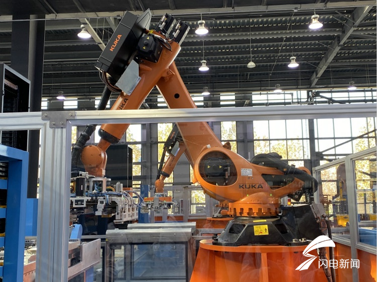 工作人员介绍,“这边是智能锁附机器人,它在8分钟之内可以完成130颗螺丝的锁附,而之前用人工,需要2个操作工人,1个小时才能完成。”据了解,智能锁附机器人采用CCD视觉智能系统,可自动判定螺丝孔的坐标位置,且定位精准,扭力精确,精度可以达到0.06毫米,相当于一根头发丝的直径。“如果通过人工操作,扭力是不可控的,可能会对背板螺丝造成损伤,但是机械臂完全是靠机械系统来控制,扭力精准稳定,对产品质量有很大保障。”