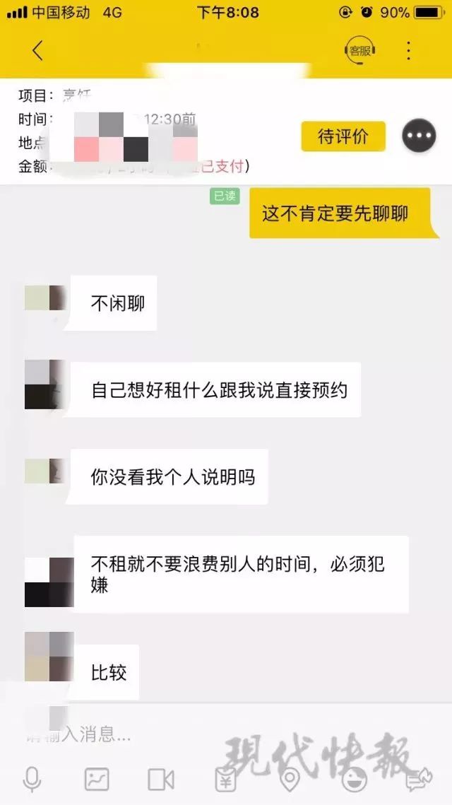 记者打了招呼,等了 20 分钟 Candy 才回复,直接就问 " 你是要租我吗 "。记者询问服务的具体内容,Candy 有些不耐烦," 确定你就预约,不要浪费别人时间。" 随后,记者选择了 " 烹饪 " 服务,和她约定第二天中午到记者家中做饭。