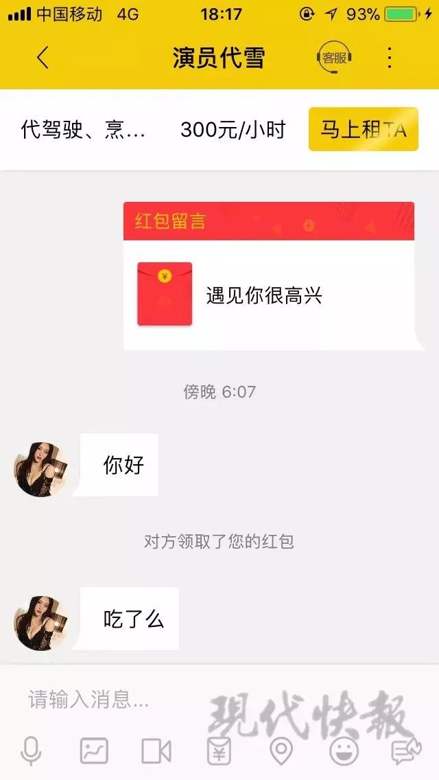 租人像淘宝买东西 300 块钱租人一小时