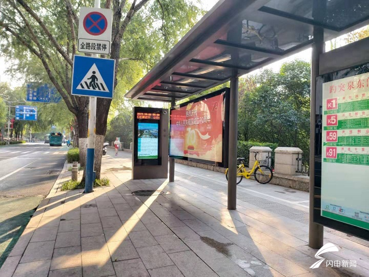 闪电新闻记者了解到,为方便乘客乘车,黑虎泉西路趵突泉北路上的12个公交站点统一更换了候车亭,并新增设了智能公交站牌,实时公布公交运行情况和到站信息等,让乘客不再盲目等车。“年轻人可以通过手机APP了解公交车运行情况选择乘车,不会用智能手机的老年人可以从电子站牌获取乘车信息,方便了大多数人。”济南市住房城乡建设局相关负责人告诉闪电新闻记者。