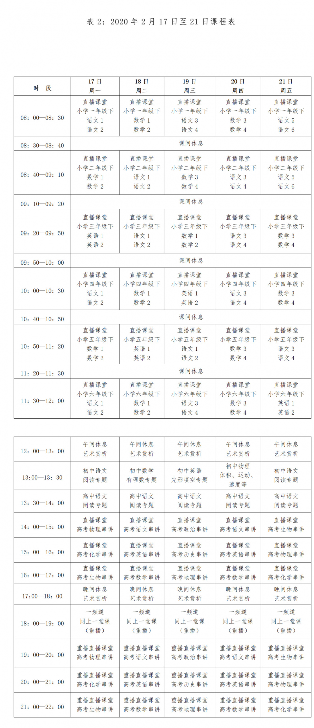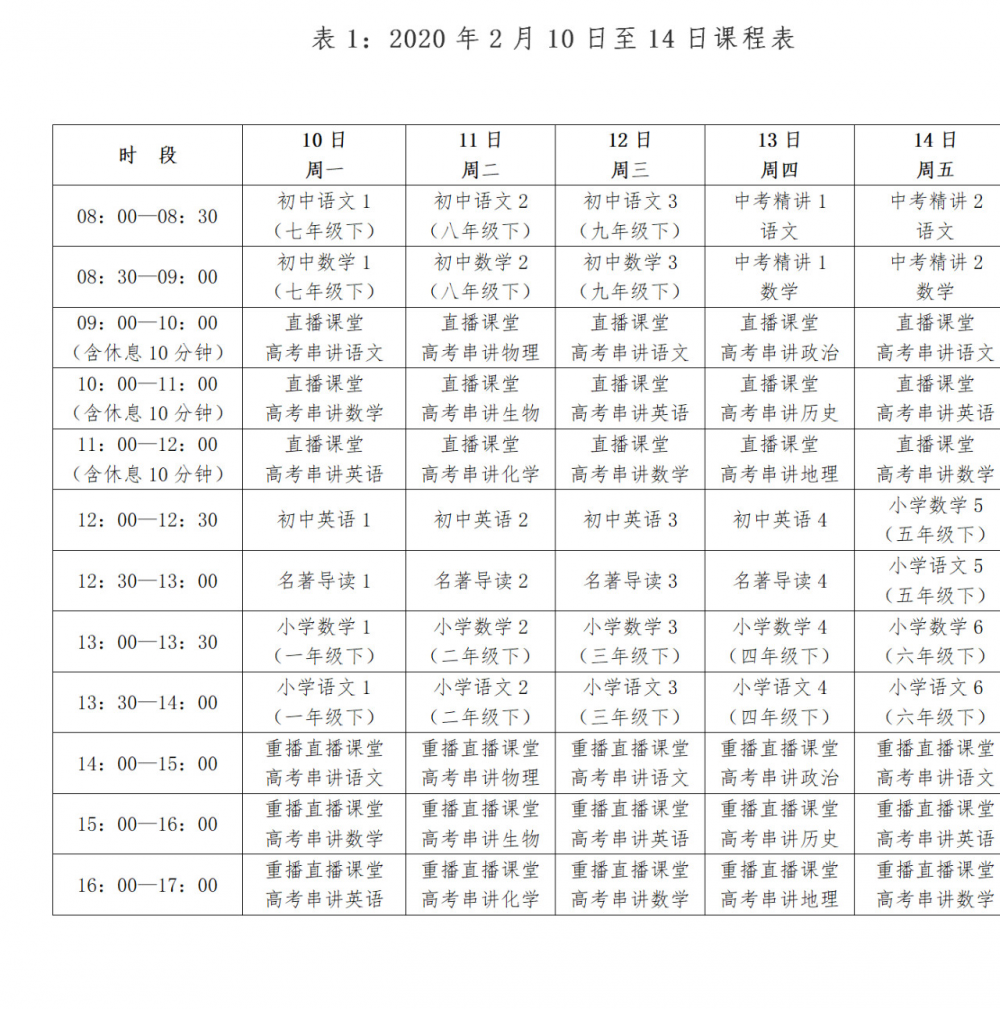 附:2月10日至14日、2月17日-21日 CETV-4频道(中国教育电视台空中课堂频道)课程表