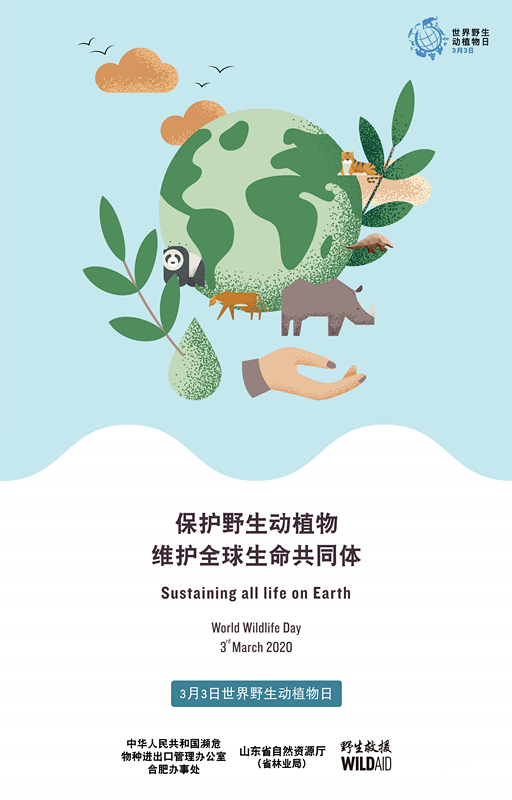在第七个“世界野生动植物日”来临之际,为加大野生动物保护力度,提升公众野生动物保护和管控意识,山东省自然资源厅制作了野生动物保护管控宣传海报网络版,呼吁大家共同保护野生动植物。