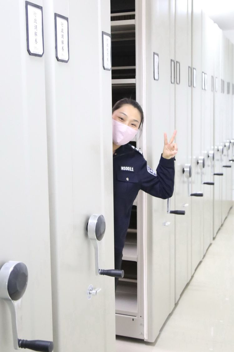 韩月是法制大队案管中心的辅警,负责分局案卷整理工作。今年,南山分局新建了档案管理室,全部换成了手摇式移动档案柜,工作空间增大了,档案室也更加亮堂了。她说:手柄摇一摇,案卷就找到,管理更规范,工作更方便!