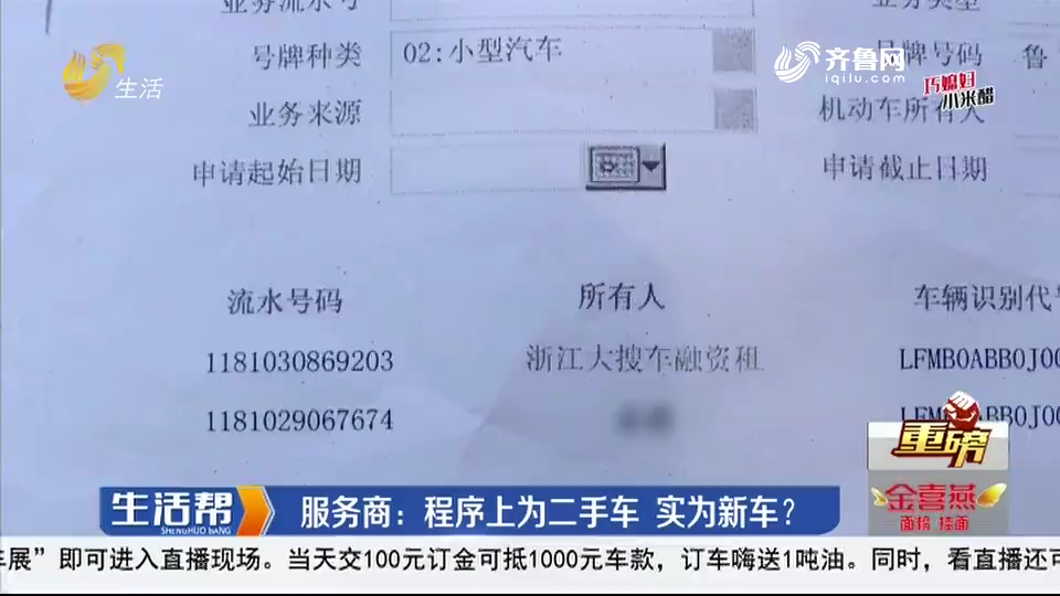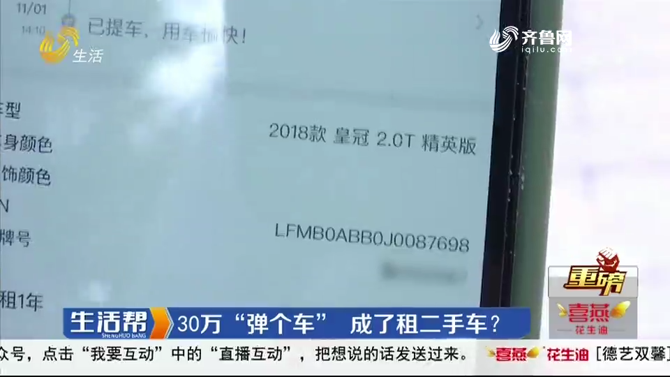 齐鲁网·闪电新闻4月22日讯 2018年10月,潍坊的朱女士在“弹个车”App上下单贷款购买了一辆2018款皇冠2.0T精英版丰田汽车,车价接近30万,但是没想到车开了还不到一年,她却发现了一个问题,“这个车挂了两遍牌子,是个二手车,到我这是三手了”。朱女士说,她当时购买的是新车,现在却变成了二手车,事实真的如此吗?