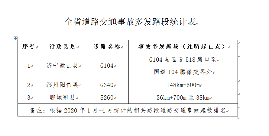 >>20日,山东省公安厅交通管理局发布了今年第二批全省道路交通事故多发路段统计表。其中,位于济宁微山县的G104与国道518路口至国道104滕微交界处路段发生事故量最多。详情