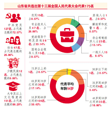 >>第十三届全国人民代表大会第三次会议即将开幕。山东省应出席此次会议的全国人大代表共有170名。详情