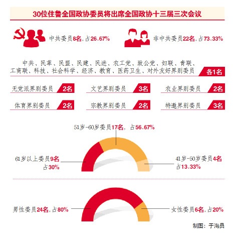 >>全国政协十三届三次会议今天将在北京开幕。出席此次会议的住鲁全国政协委员一共有30名。详情