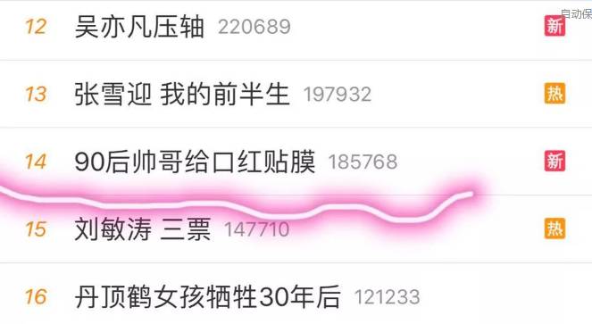 “90后帅哥给口红贴膜”上了微博热搜。