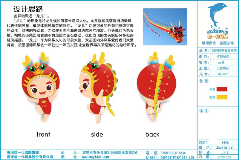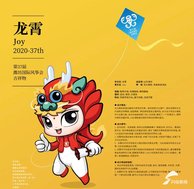齐鲁网·闪电新闻7月31日讯 7月31日,潍坊国际风筝会官微公示第37届潍坊国际风筝会吉祥物征集获奖人员名单及作品,公示期为2020年7月31日至8月3日,公示期间,如对公示人员有异议,单位或个人可以书面形式向活动组委会反映,反映问题者需提供真实姓名(单位)、联系电话和通讯地址,以便及时反馈。联系电话15269620005,监督电话0536—8196033。