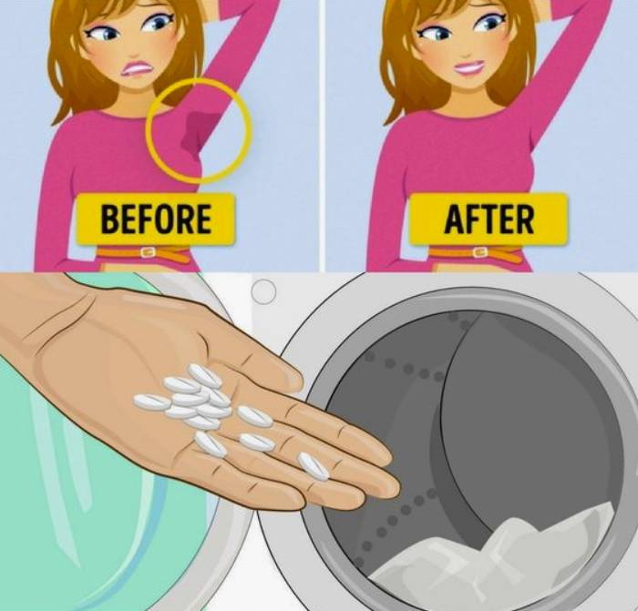 衣服上的汗渍,只需压碎几片阿司匹林药片,然后放在清水中,将有汗渍的部分浸泡一会儿,之后就可以很容易清洗干净啦。