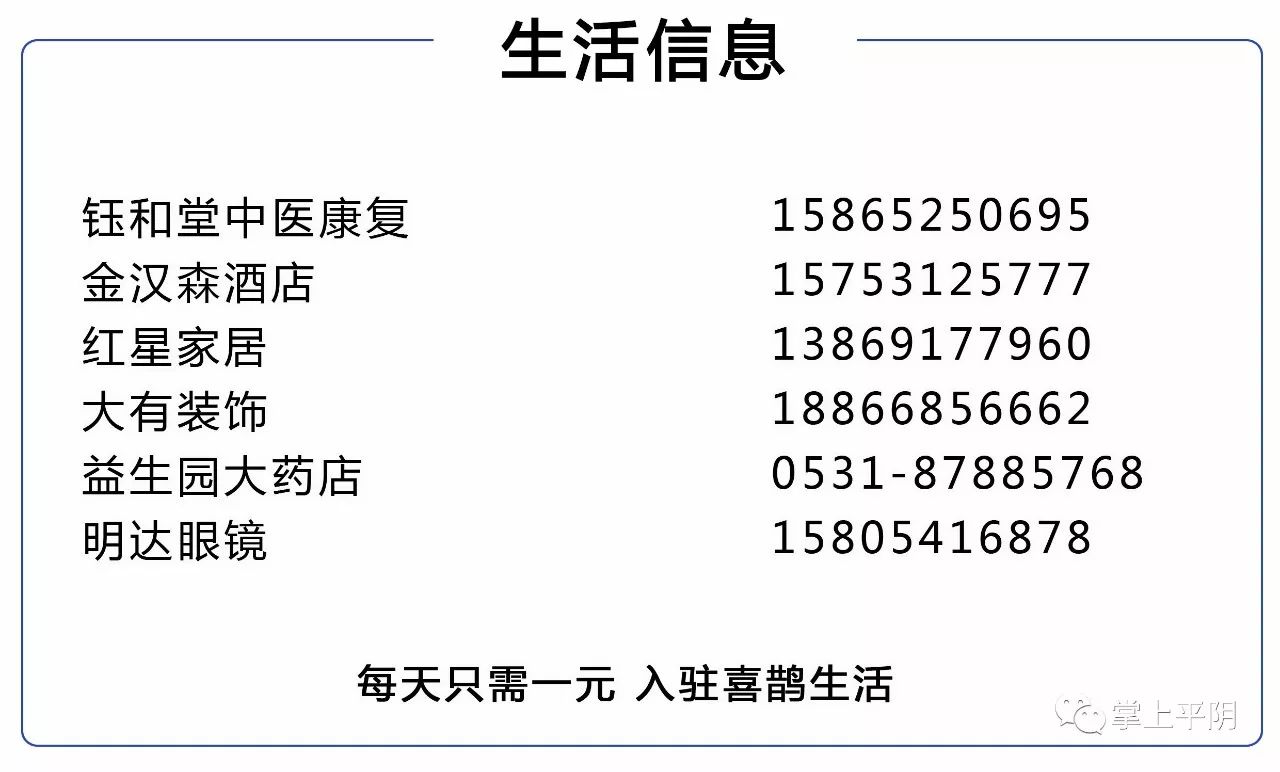 掌上平阴近期在首页消息中对入驻《喜鹊生活》平台商家,进行免费推介。《喜鹊生活》方便百姓,服务商家。