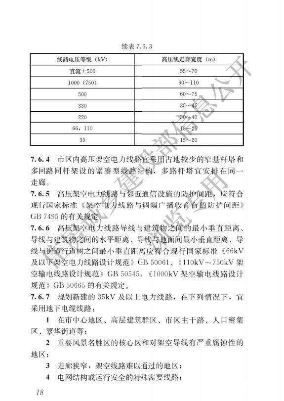 2015年5月1日我国开始实施的《城市电力规划规范》中指出,城市电力线路分为架空线路和地下电缆线路两类。架空电力线路的路径选择,应根据城市地形、地貌特点和城市道路网规划,规划新建的35kV及以上高压架空电力线路不宜穿越市中心地区,在市中心地区、高层建筑群区、市区主干路、人口密集区、繁华街道宜采用地下电缆线路。