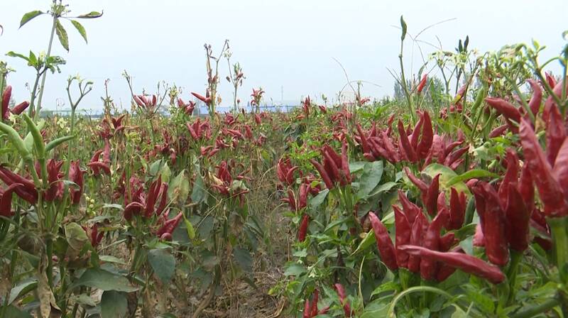 同样在吴庙村,村主任吴庆轩的辣椒也喜获丰收。近年来,吴庙村充分发挥支部和种植大户的引领作用,通过种植大蒜、辣椒等经济作物,从土地流转、招募贫困户务工、规模种植等多个方面来带领群众增加收入。