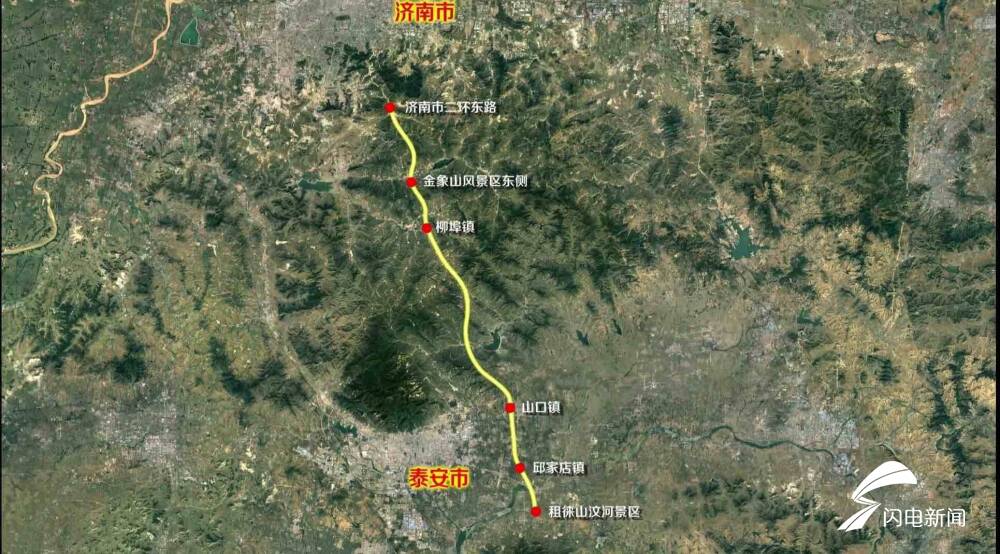 济南至泰安高速公路是山东省高速公路规划网的重要组成部分,起点位于济南市绕城高速公路与二环东路南延交叉处,路线经过济南市市中区兴隆街道、南部山区锦绣川街道、柳埠镇,泰安市泰山景区黄前镇、岱岳区山口镇、泰山区邱家店镇、徂汶景区徂徕镇等7个乡镇,终点位于泰安市徂徕镇东北部,设置徂徕枢纽与泰新高速公路相衔接。济南至泰安高速公路工程概算投资112.94亿元,主线全长55.9km,其中济南段24.6km,泰安段31.3km。主线采用双向六车道标准,设计行车速度120km/h,路基宽度34.5米。主线设隧道6座,长度约13km,主线桥梁65座,长度约15km,桥隧比约50%。全线设置互通立交8处,收费站6处,服务区1处。