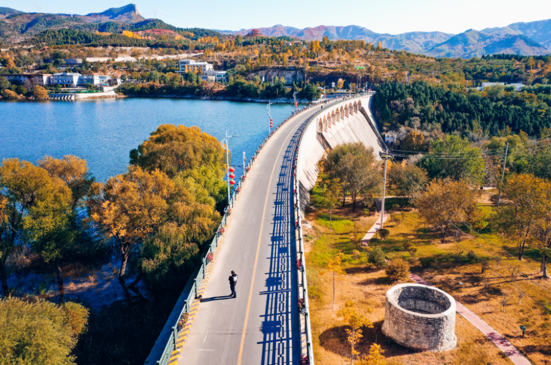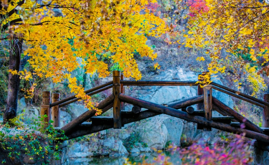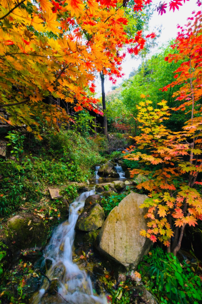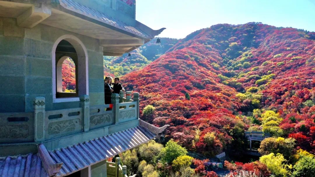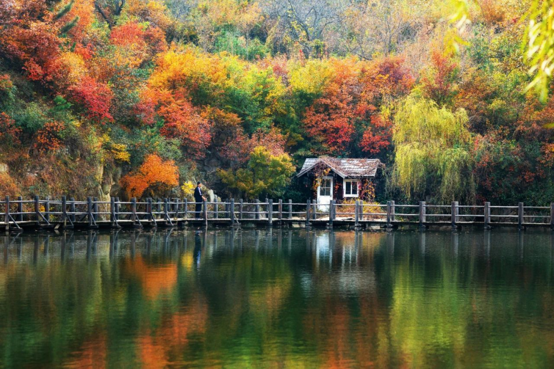 秋天一到,九顶塔的风景仿佛被大自然打翻了调色盘,各种植物的叶子,全部在秋风的照拂中变成了娇艳的暖色。