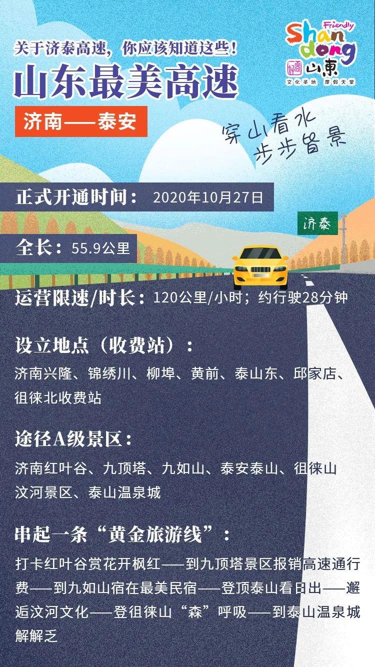 济泰高速集齐济南的红叶谷、九顶塔、九如山、泰安的泰山、汶河、徂徕山、泰山温泉城等众多山东热门旅行地,是一条名副其实的最美高速!