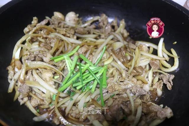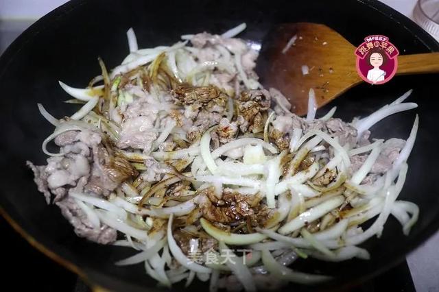 4、洋葱也可以换成大葱,一样美味,提前炒一下断生,能和羊肉片更好的融合在一起,不要炒蔫,要有脆脆的口感才好吃。