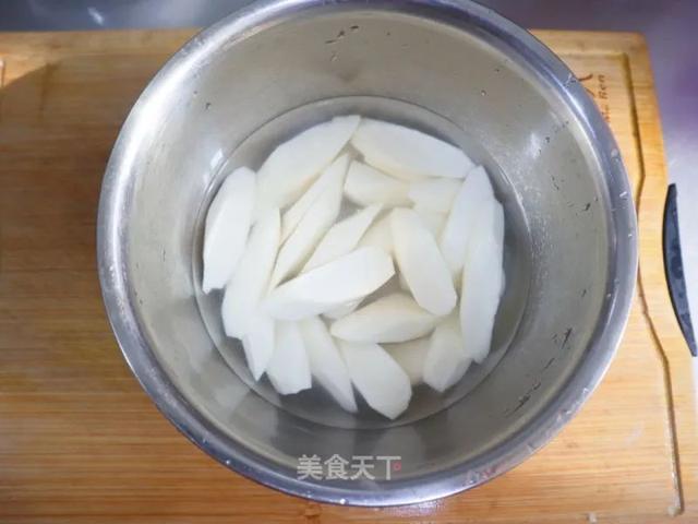 15. 去皮切厚片(先用水泡起来防止变色)。