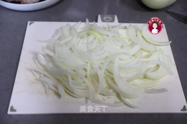 3. 洋葱切细细的丝;我只用了半个,也切了一大盘。