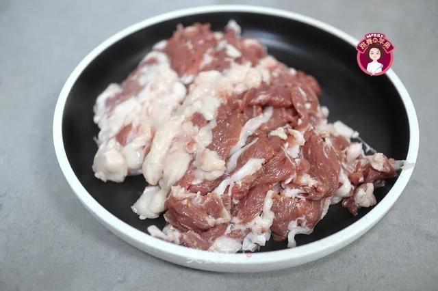 2、羊肉切的时候要断丝切,要有点肥的,这菜才香。