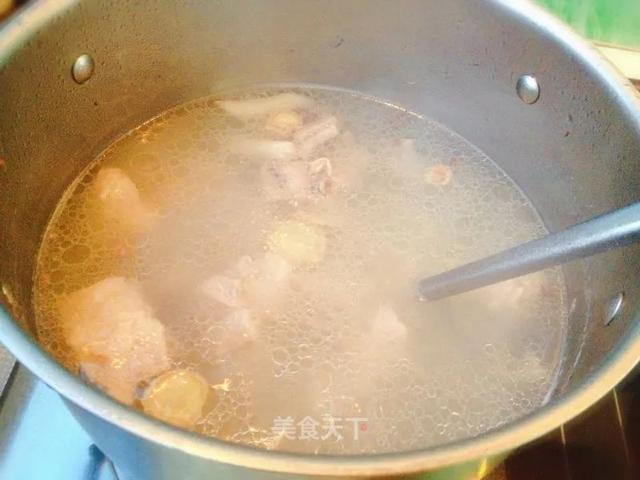 5. 大火煮开,煮出肉的杂质血沫,2分钟后关火。