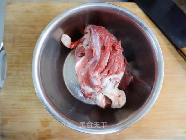 1. 羊腿肉买回洗净,浸泡一会,让它去去血水。