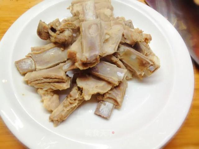 1、我没看时间,炖了差不多一个小时,炖到羊排啃起来脱骨即可。