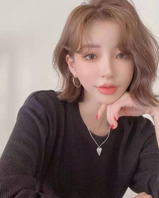 比如上图中这款发型,发型的下端有一个大的弧度,引导发尾向内自然卷进去,看起来更加柔美,也非常洋气。妹子这款巧克力色非常显白,也是典型的韩系发型风格。