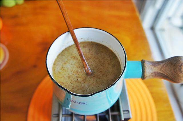 8、想喝的时候拿出来,加入适量的水煮开,也可以直接用热水冲泡,期间不断搅拌让里面没有干粉,