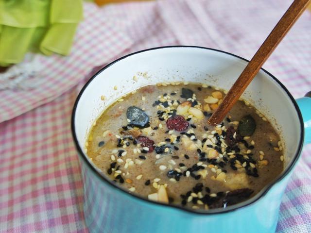 10、最后加上自己准备好的干果和糖,搅拌均匀之后就可以了。以后早上都可以不用做早餐了,这一样就够了,管饱。上班的时候饿了冲上一杯,不知不觉就填饱了肚子。