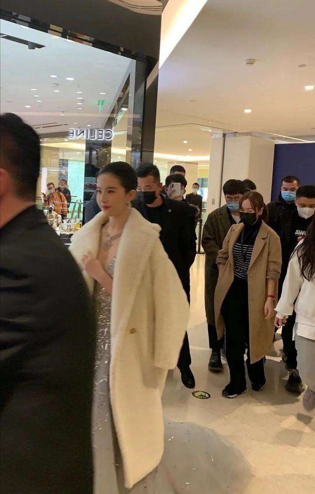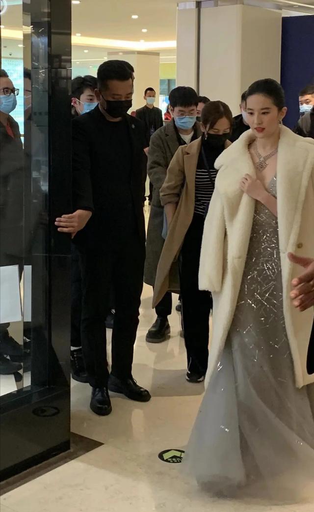 刘亦菲当天的造型是一袭银色亮片礼服,不过由于天气比较冷,所以在没有正式上台之前用一件白色的毛绒外套作为搭配,礼服虽然实用度低,可是毛绒外套就不一样了,她身着的这件毛绒外套,大家日常生活里穿也是一个很不错的选择。