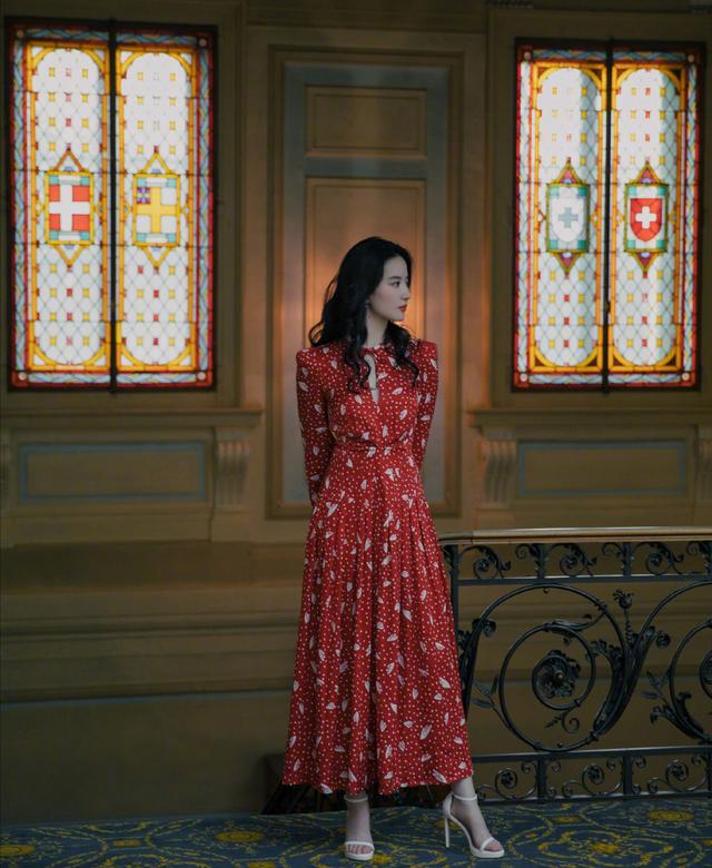 在款式上,刘亦菲这一身红色的印花裙也是非常的复古,类似于裹身裙的款式对于曲线的修饰也非常的明显,勾勒出了身形,看上去更加吸引人,裙子领口的设计也非常的独特,镂空与丝带组合在一起,看起来魅力十足,整体视觉上面印花比较清爽,很容易就穿出了小清新的感觉。