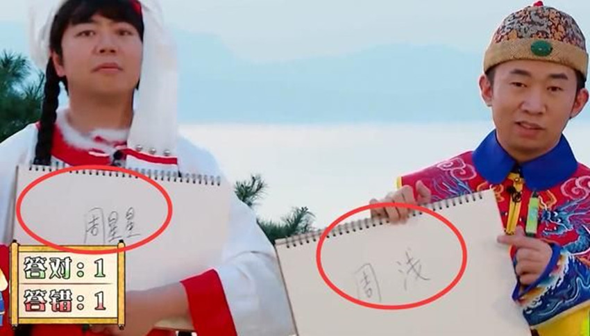 而贾玲和朗朗两个人也答对了周深的原名,这个时候杨迪并没有选择回答周深的原名,因为已经有了三个正确答案,那么春游家族怎么可能全部回答正确呢?杨迪就故意回答错误,说的答案是周浅。而周深的答案完全暴露了春游家族之中的默契,他的答题板上也写着周浅两个字。很多人看到结果之后,都被周深和杨迪两人强大的默契给惊讶到了。两个人同时用错误答案这个可以理解,但没想到连错的方式都一样,因为他们都心照不宣地用了反义词浅作为答案。怪不得周深和杨迪被节目中的人称为双胞胎了,果然不仅是性格合得来,两个人的脑回路也几乎完全一样。
